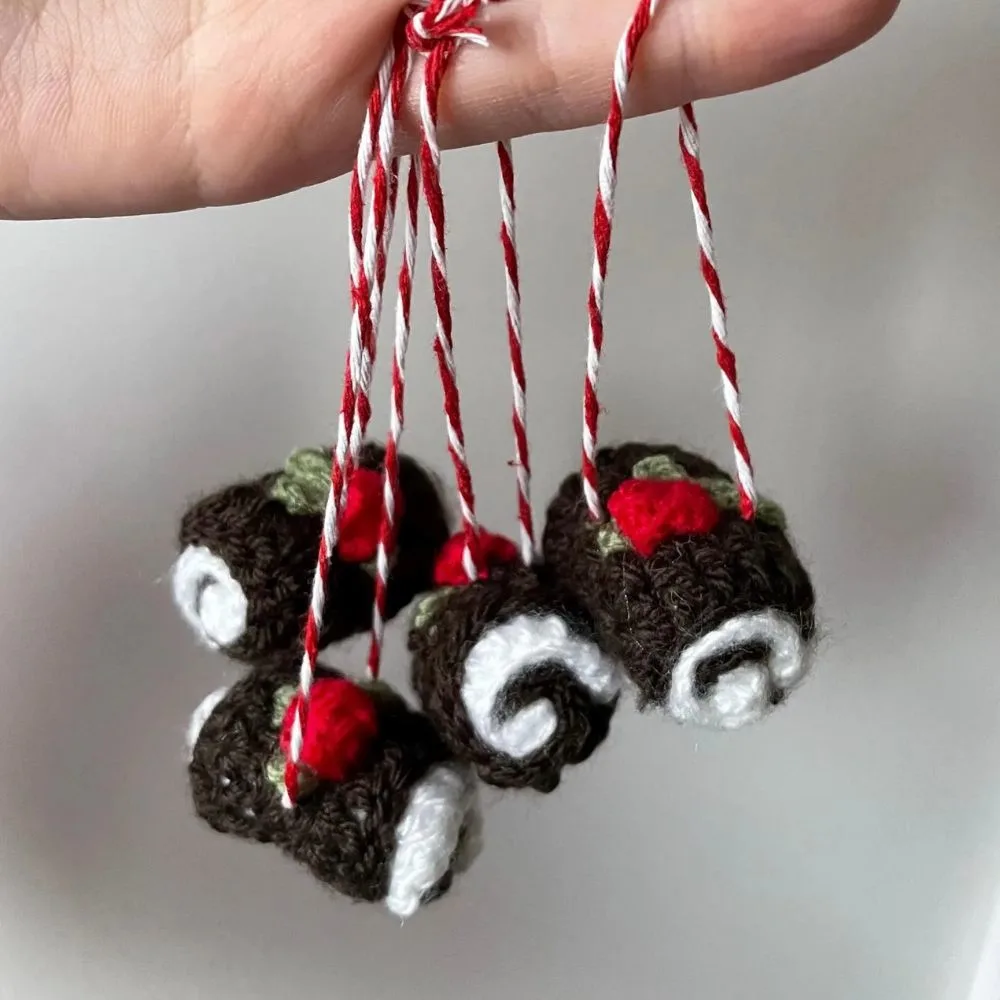 A cozy handmade crochet Yule log featuring holly leaves and red berries. This charming ornament adds a warm, nostalgic touch to your Yule or Christmas tree—perfect for Winter Solstice celebrations or as a thoughtful handmade gift.